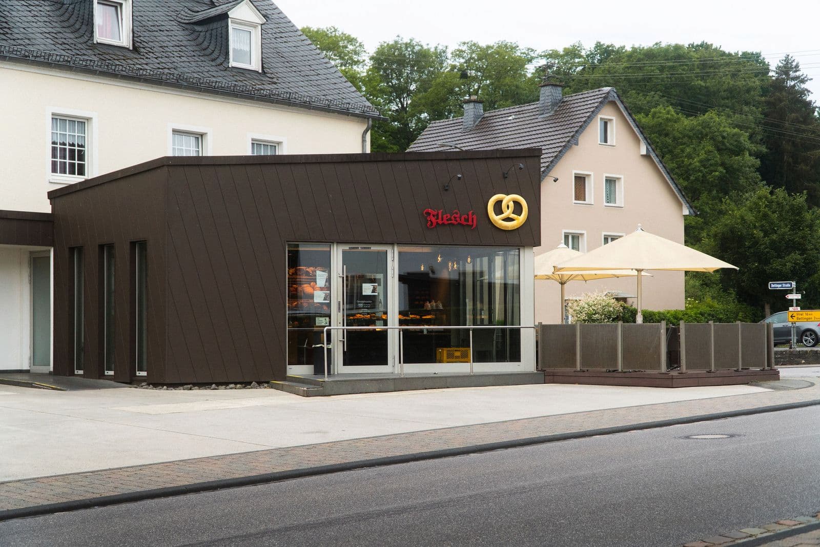 Im Jahre 2012 wurde die ehemalige Gaststätte "Rinnen" in Oberweis einer umfassenden Modernisierung unterzogen. Das Gebäude erhielt nicht nur ein neues Erscheinungsbild, sondern wurde auch um einen modernen Anbau aus Holz erweitert. Dieser bietet nun der Bäckerei Flesch ein großzügiges Platzangebot. Im Erdgeschoss befindet sich zudem eine Filiale der örtlichen Volksbank. Der Anbau der Bäckerei fällt durch seine moderne Formgebung und die braune Aluminiumfassade auf und setzt sich somit bewusst vom Bestandsgebäude ab.