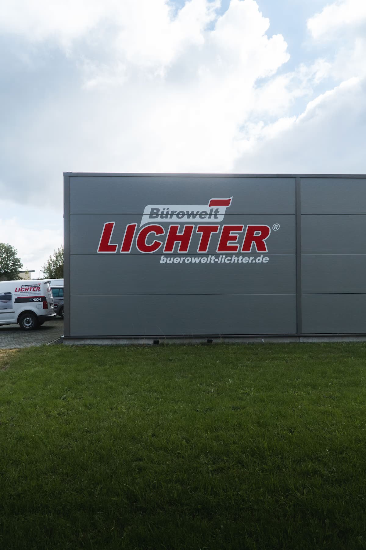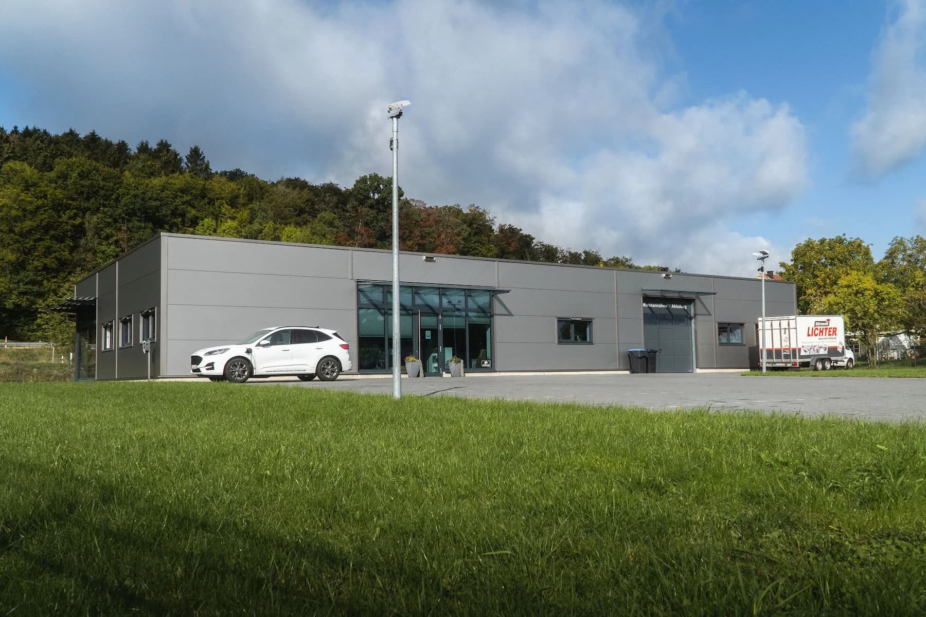 In Fließem entstand ein Neubau mit einer modernen Aluminiumfassade, der nun als neue Verkaufsfläche für die Bürowelt Lichter im Gewerbegebiet genutzt wird.