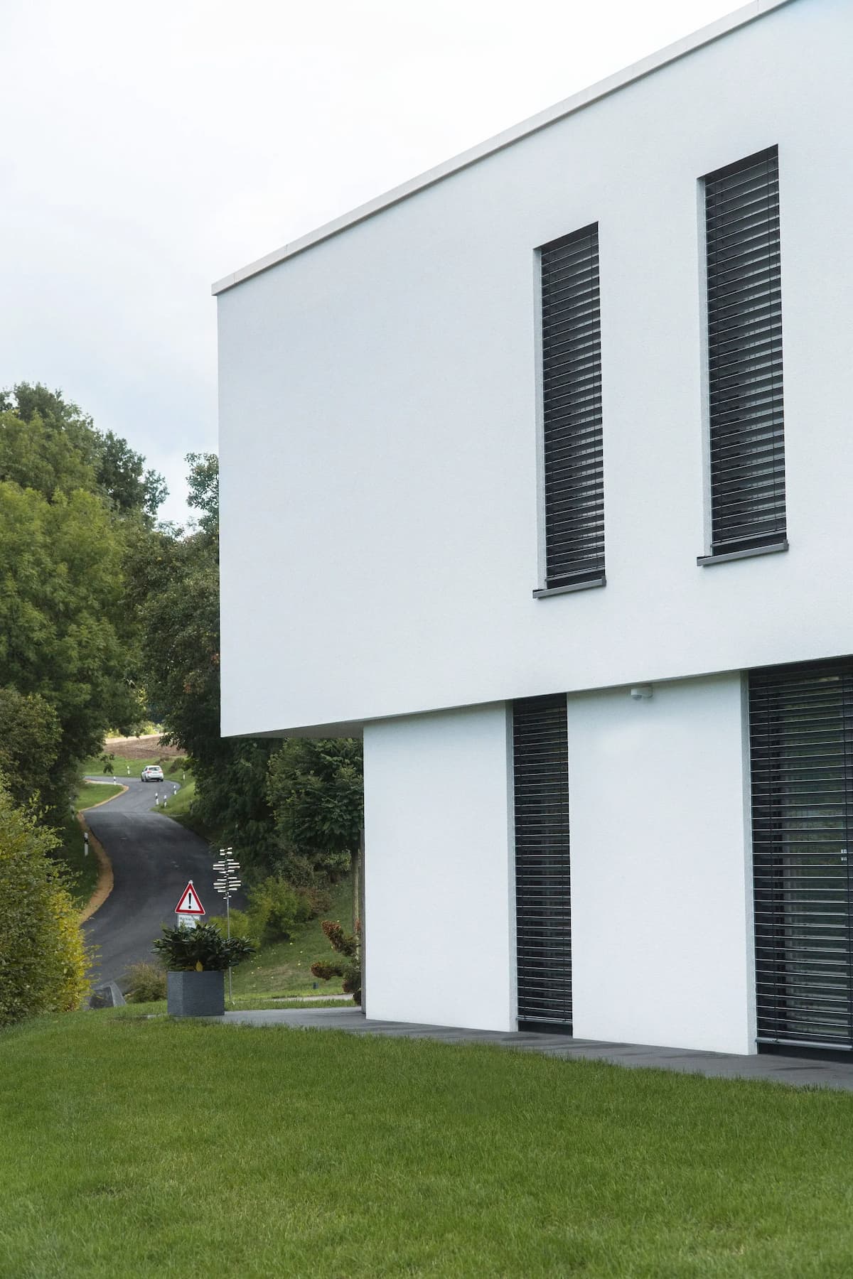 Inmitten der grünen Hügellandschaft von Bickendorf erhebt sich ein modernes Massivholzhaus, welches durch große Fensteröffnungen einen tiefen Einblick in die umgebende Natur ermöglicht.